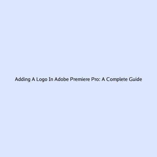 Adding A Logo In Adobe Premiere Pro: A Complete Guide